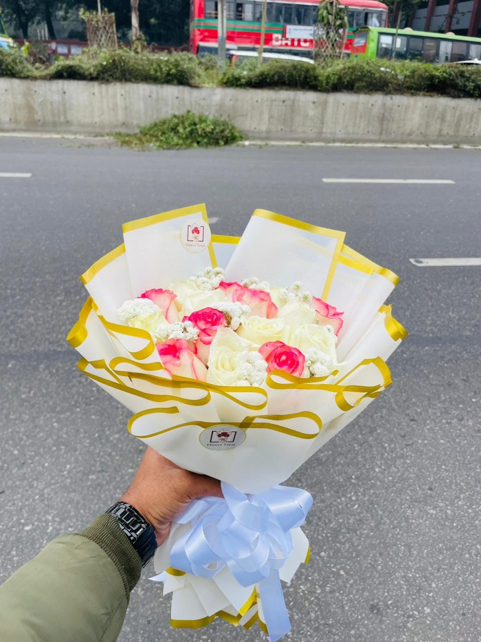 ✔ Fresh, premium-quality white and pink roses
