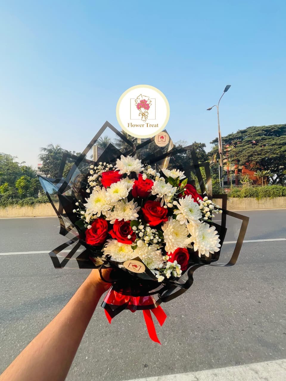 Celebrate love, admiration, and heartfelt emotions with our White & Red Mixed Rose Bouquet, featuring fresh red and white roses arranged beautifully with premium wrapping. The combination of red and white roses symbolizes unity, love, and respect, making this bouquet perfect for meaningful gestures and special occasions.